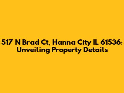 Hey everyone! Today, we're diving deep into the property located at 517 N Brad Ct, Hanna City, IL 61536. We'll explore everything from its location and potential value to what makes this address stand out. Let's get started, shall we? This address is more than just a place; it's a potential home, investment, or a spot with its own unique story. Getting to know a property means looking at all the different aspects that make it what it is, right?