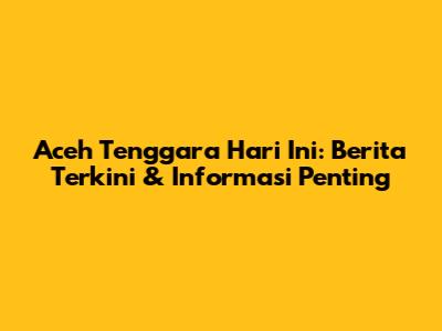 Aceh Tenggara Hari Ini: Berita Terkini & Informasi Penting