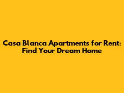 Casa Blanca Apartments For Rent: Find Your Dream Home