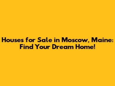 Moscow, Maine: Find Your Dream Home For Sale!